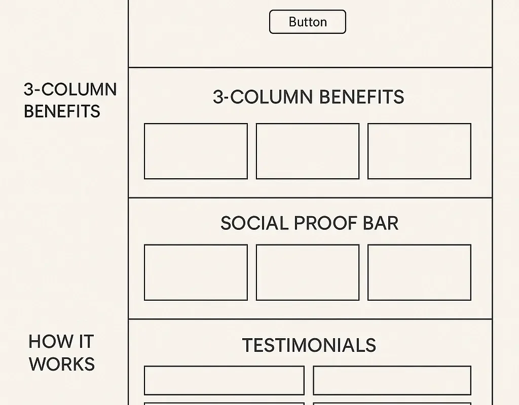 Hero: “Here’s the problem we solve for our target audience” How it works: “Here’s how we help customers” (3 steps max to avoid decision fatigue) Social proof: “Here’s evidence from customer testimonials” Objection handling: “I know what you’re thinking…” Final call to action: “Ready? Here’s how to start”